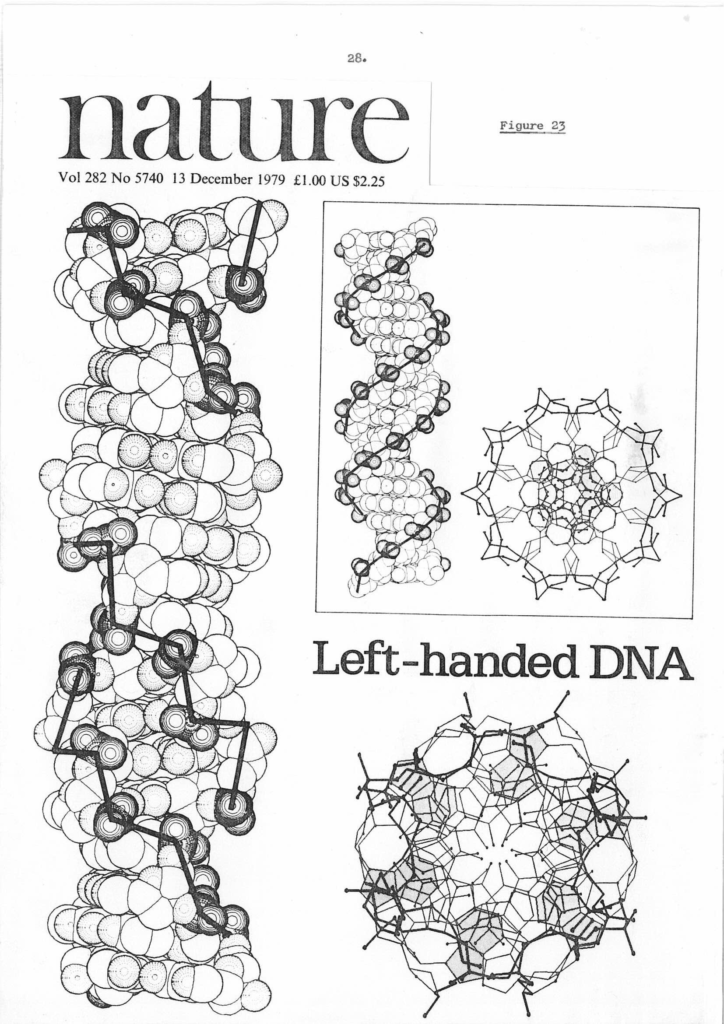 The front cover of Nature Vol 282 Issue 5740 published on 13th December 1979 ( https://sidebysidedna.com/johnson-materials/16-dna-is-not-always-a-simple-double-helix/ Johnson Material 16, p 28 and online search) heralded the discovery of the ‘only’ left-handed DNA known to science. This was the famous Zig Zag which had been discovered by a group at MIT headed by Alex Rich. This model is still a double helix but clearly shows that left-handed elements are viable and significant.